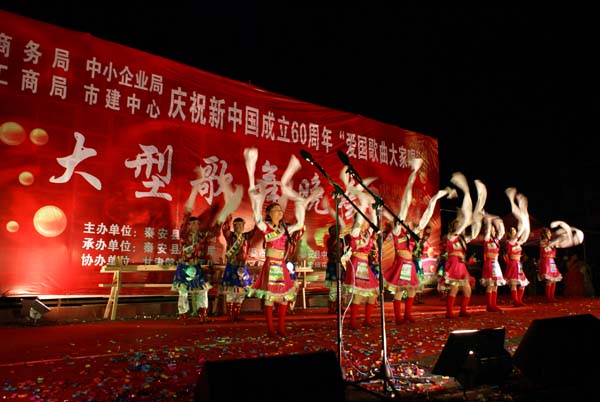 秦安县庆祝新中国成立60周年“爱国歌曲大家唱”大型歌舞晚会现场