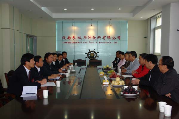 长城电工总经理张希泰、副总经理毛建光等领导 在陇南果汁公司召开工作座谈会