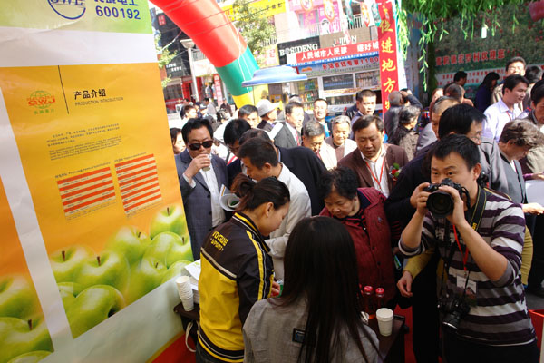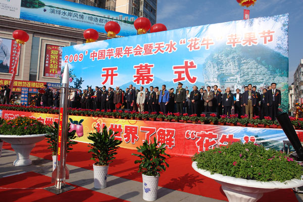 2009年9月16至20日,天水德信在线饮料有限公司参加了为期5天的2009’中国苹果年会暨天水“花牛”苹果节。来自中国苹果流通协会、国内外优质农产品进出口商、水果新品种、新技术推广单位和生产大户、龙头企业负责人、连锁店经销商等600多人参加。