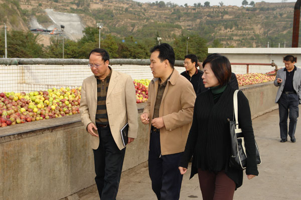 王小宏总经理陪同张处长等一行参观了苹果原料储存库和生产车间,并详细介绍了公司当前经营情况和果汁行业目前的趋势。王总经理还指出:因受金融危机影响,企业目前也确实面临一些实际困难,希望政府能在苹果的收购和存贮上给予支持,在产业政策的扶持上加大力度。