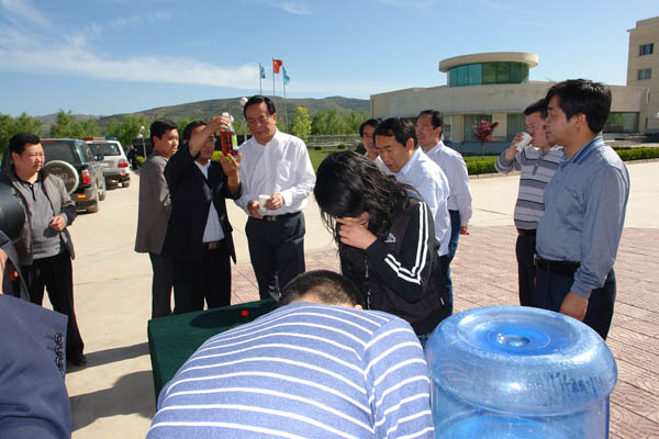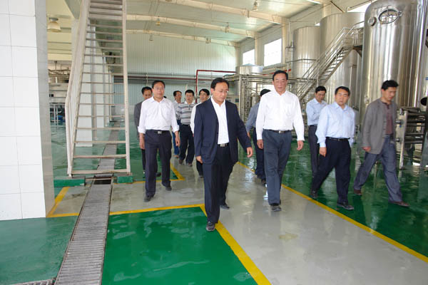 陇南公司经理张忠旺及生产、质管部门负责人陪同石军副省长一行视察、指导工作。石军副省长现场品尝了浓缩苹果汁。