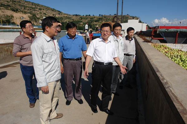 在公司副总经理秦小强的陪同下,蔺行长一行参观了天水公司的生产线和苹果收购现场,并详细了解了本榨季苹果的收购价格、数量等问题。