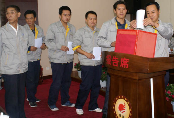 公司副董事长王小宏主持会议 根据大会选举办法,经无记名投票差额预选、等额选举,王根成、柳军民、王小宏、董占成、秦小强、王建华、冯瑜稳七名同志当选为公司第二届党委会委员,王根成、熊建设、董小林三名同志当选为公司第二届纪律检查委员会委员。
