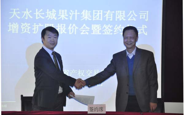 签约仪式上,长城电工副总经理、公司董事长毛建光向参会嘉宾详细介绍了果汁集团公司概况及生产经营情况。甘肃省产权交易所总经理赵永涛现场拆分宣读了投资方增资报价单。 随后,长城电工董事长杨林分别与投资方签署了《增资扩股协议》。