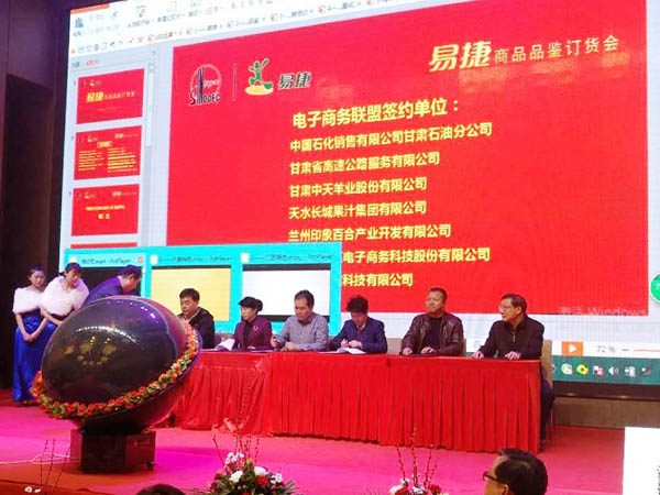 12月29日,中国石化甘肃石油分公司邀请了省内外168家长期支持石化易捷的大客户,召开2017年易捷商品品鉴订货会,来自全国各省市及香港60余家易捷品牌下知名企业进行产品推介展示和商品贸易洽谈,产品包括省内外重点商品、精准扶贫商品、海购商品、义乌精品等,作为易捷甘肃特色商品之一的“陇上花牛”苹果汁,也受邀参加了本次品鉴订货会。会上,总经理王小宏参加电子商务联盟签约仪式,公司获得中国石化甘肃石油分公司2017年优秀供应商称号。