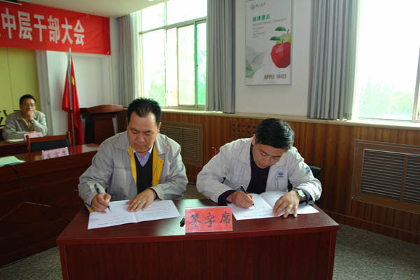 (总经理王小宏与副总经理张忠旺签订目标责任书)