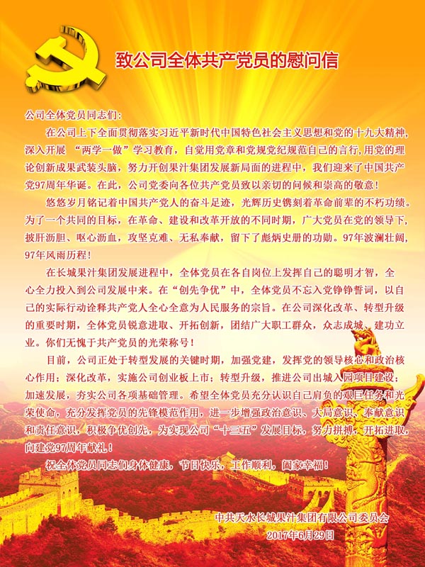 | 下一篇:公司开展庆祝中国共产党建党97周年系列活动 |