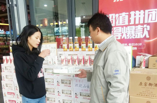 为了利用节日促销,销售人员在一线不畏疲劳、连续作战。学生营养餐部陇南片区的工作人员为了开发新疆地区学生营养餐市场,国庆放假期间依然出差在外,坚守在自己的工作岗位上。中石化兰州片区,天水、兰州大众市场组织全体人员深入中石化加油站、社区和超市,积极开展陇上花牛100%苹果汁PET新品的宣传推介及促销活动。