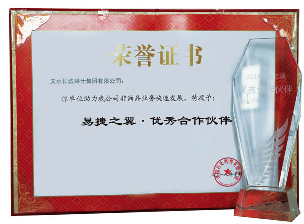 | 德信在线荣获 “易捷之翼•优秀合作伙伴”荣誉称号 |