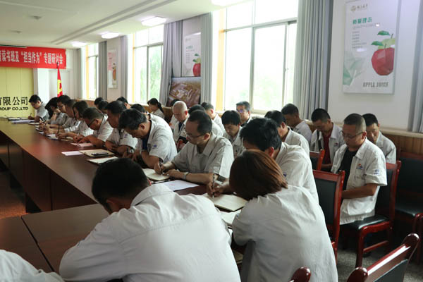 最后,公司主题教育领导小组组长王小宏同志围绕“担当作为”发言并作指导讲话,他强调,公司各级党组织要高度重视、精心组织主题教育活动,各党支部主要领导同志要履行第一责任人职责。党员干部首先要抓好自身的教育,作出表率。要把开展主题教育与果汁集团实际结合起来,推动公司及各部门工作落实。把主题教育中形成的好经验好做法进行总结提炼,用制度的形式固定下来进行推广和实施,通过专题教育切切实实推进思想作风转变,工作效率提升,进一步促进企业健康快速发展。
