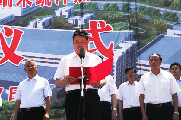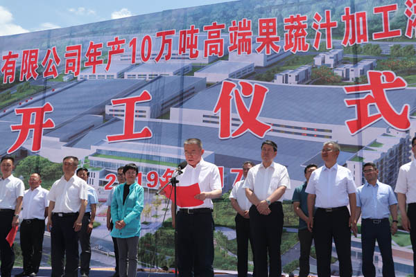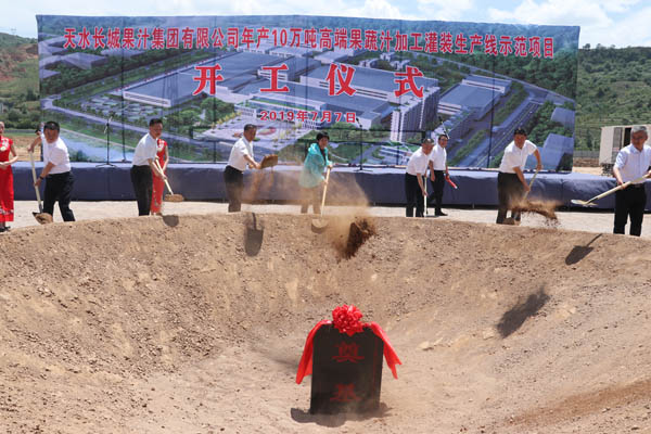 7月7日上午,公司10万吨高端果蔬汁加工灌装生产线建设示范基地项目在麦积区东柯河工业园区开工奠基。省人大常委会副主任吴明明出席开工仪式。