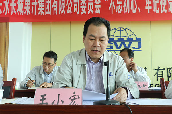 (公司党委副书记王仕郁主持会议) 王仕郁作主持总结时,提出了三点要求,一要深刻领会,切实把会议精神搞懂吃透。这次会议精神集中体现在果汁集团党委《实施方案》和王小宏书记的讲话中,公司各党支部,全体党员干部切实要在深学细研上下功夫,自觉带着思考来学习,带着感悟来传达,带着智慧来贯彻,真正把这次主题教育的根本任务、总体要求、具体目标、方法步骤搞清楚,弄明白;二要结合实际,切实让会议精神落地落实。在实施方案中,公司党委明确提出公司主题教育的指导思想、目标任务和方法步骤,各支部、全体党员要结合本支部的实际和每个党员的岗位特点,立足实际,因地制宜,制定出“自选动作”,既要不折不扣贯彻公司的统一部署,力求把规定动作做到位,又要结合部门、岗位特点,把“自选动作”做精彩;三要加快行动,切实使会议精神见言见行。各党支部要尽快制定工作方案,全面启动主题教育。公司主题教育领导小组办公室加强督促检查,及时跟进掌握各支部工作进展情况,确保主题教育取得扎实成效。