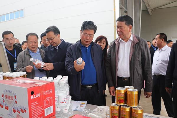 13日上午,与会人员来到公司10万吨高端果蔬汁加工灌装生产示范项目建设基地,现场观摩苹果标准化基地建设、冷链仓储、 加工、保价促销等全产业链发展经验做法。 李旺泽厅长强调,要提高标准化生产水平,建立现代栽培技术体系,建设规范的良繁基地,标准化栽培示范基地,加大商品化处理和贮藏设施建设,加快新产品研发,创立知名品牌,强化市场营销,促进苹果产业可持续发展。要推进老果园改造优化与防灾减灾设施建设,大力推进轻简化省力化栽培,推广矮砧密植栽培模式,推行无袋栽培,推广应用果园机械。要培育国家和省级龙头企业,形成产加销、贮运服一体化的现代果业生产经营服务体系。要大力发展绿色生态和提质增效,强化果品安全监管。要加快推进冷链物流体系建设和精深加工,支持龙头企业、合作社和种植大户建设气调库、冷藏库,引进现代化选果生产线,提升企业装备水平,增强企业市场竞争优势,真正把甘肃苹果产业做大做强。