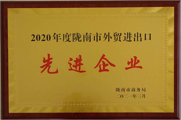 | 陇南德信在线饮料有限公司荣获2020年度陇南市外贸进出口“先进企业” |