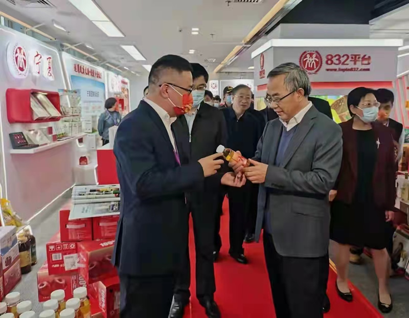 10月26日,2021脱贫地区农副产品产销对接会启动仪式在北京举行。中共中央政治局委员、国务院副总理胡春华出席启动仪式并参观北京展区。德信在线营销负责人郑建庆向胡春华副总理就德信在线生产的“陇上花牛”100%苹果汁产品特性、销售规模、合作模式和产业带动情况做了详细汇报。