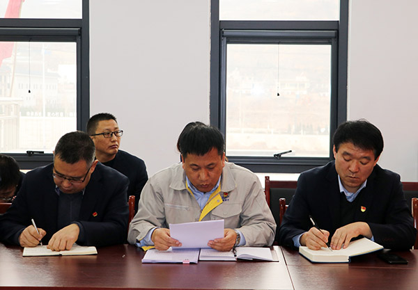 (秦安公司党支部书记、董事长汝强汇报2021年度纪检工作情况) 党委副书记、纪委书记颜群对全体党员干部进行了集体廉洁谈话,对中层干部提出了五点约谈要求:一要做到政治坚定,思想过硬,善于学习,增强本领;二要坚决贯彻全面从严治党,严格落实主体责任;三要顾大局识大体,自觉在大局下思考行动;四要扎实推进作风建设,不断实现“三不”一体推进;五要坚持监督执纪常态化机制,营造风清气正政治生态。