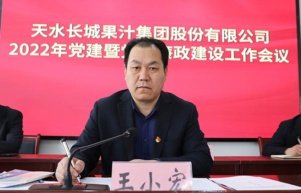 党委书记、董事长王小宏作了题为《坚定不移推改革,凝心聚力促发展,以高质量党建引领开创企业新格局》的党建暨党风廉政建设工作报告,报告总结回顾了2021年党建和党风廉政建设工作,对2022年党建和党风廉政建设的要求及重点任务进行了部署,一是全面加强党的领导,提升公司治理能力和水平;二是全力推动巡察整改,使德信在线党建工作再上新台阶;三是夯实党建工作基础,全力抓好基层党支部标准化建设;四是强化监督职责,持续加强党风廉政建设工作;五是巩固意识形态阵地建设,加强防范舆情风险和管控力度;六是发挥党支部模范带头作用,全力抓好党建引领生产经营;七是落实人才发展规划,加强高素质干部人才队伍建设;八是发挥党组织总揽全局的领导核心作用,推进企业文化宣传、群团、维稳、安全生产、帮扶和疫情防控等各项工作全面提升。他强调,要坚持以习近平新时代中国特色社会主义思想为指引,坚决贯彻落实中央、省委省政府、省政府国资委和甘肃国投集团党委的决策部署,坚定信心、鼓足干劲、团结一心、勇毅前行,以高质量党建引领保障企业高质量发展。