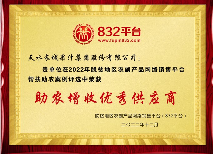 在12月28日举办的“2022脱贫地区农副产品产销对接会暨脱贫地区农副产品网络销售平台(832平台)年货节启动仪式”上,“832平台”揭晓了2022年脱贫地区农副产品网络销售平台帮扶助农案例获奖名单并表彰了47家优质供应商,德信在线在2万多家供应商中脱颖而出,荣获脱贫地区农副产品网络销售平台(832平台)2022年度“助农增收优秀供应商”奖。 脱贫地区农副产品网络销售平台(832平台)(以下简称“平台”)是集“交易、服务、监管”功能于一体,实现脱贫地区农副产品在线展示、网上交易、物流跟踪、在线支付、产品追溯一站式聚合,连接脱贫地区带贫能力强、产品质量好、有诚信的企业、农民专业合作社、家庭农场等市场主体与中央预算单位、各级预算单位和非政府采购领域单位,为全社会广泛参与采购脱贫地区农副产品,推动各地乡村产业振兴目标的顺利实现提供支持,平台拥有2万多家供应商。 |