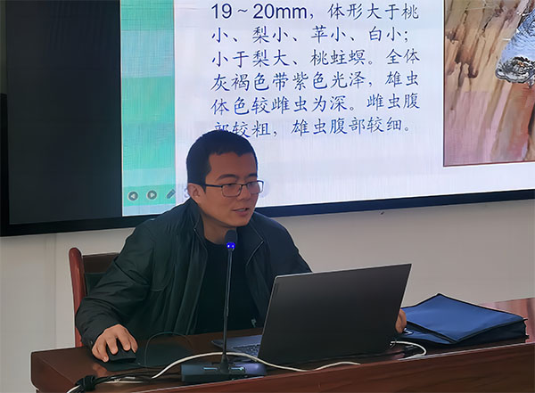 植保站专员白玉龙对苹果蠹蛾的危害症状、蠹蛾的形态特征以及防控措施等方面进行全面讲解,并给公司赠送了专用蠹蛾诱捕器。通过学习,全面提升了一线业务骨干的植物检疫业务技能及病虫害防治知识的实践应用。 |