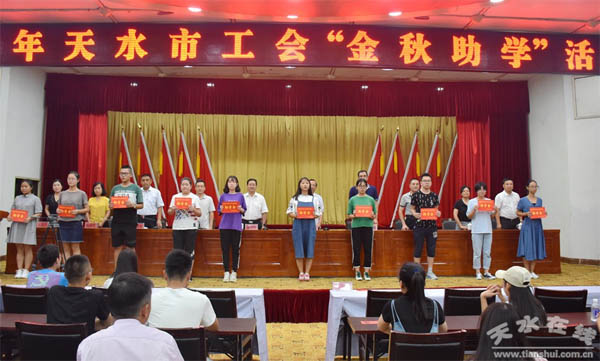 8月27日,天水市总工会举行“金秋助学”活动,为市直30户企业的92名贫困学生发放助学金,帮助品学兼优、家庭困难的职工子女圆大学梦。我公司三名困难家庭学生受到天水市总工会“金秋助学”的资助。 |