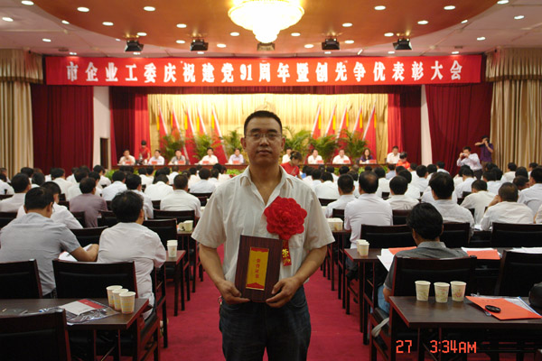 2012年6月27日下午,天水市企业工委庆祝中国共产党成立91周年暨创先争优表彰大会在天水市迎宾馆隆重举行。公司党委、秦安公司财务科长尹陈平分别被天水市企业工委评为先进基层党组织和优秀共产党员,并在会上受到表彰。