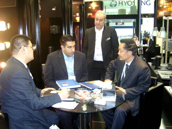 西电集团、正泰、德力希及人民电器等国内知名品牌企业和同行参展了本届MEE展会。长城电工以统一品牌形象和统一宣传资料、用30平方米的特装展厅亮相本届展会。在3天的展会期间,来自德国、阿联酋、伊朗、沙特、阿曼、黎巴嫩、科威特、塞浦路斯、土耳其等18个国家和地区近70位客商参观访问了长城电工展厅并与参展人员进行了广泛的交流和洽谈。展会期间,长城电工杨林董事长分别与伊朗Electronic Azar公司总经理Bordbor先生和德国MBH公司总经理Ghosn先生就有关产品销售合作事宜进行了友好洽谈并确定了相关后续工作。