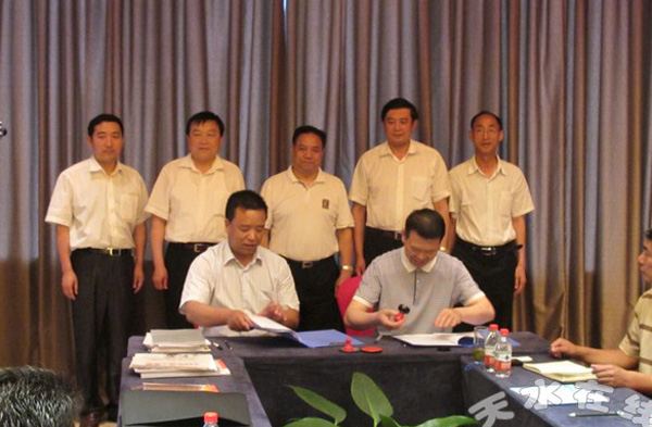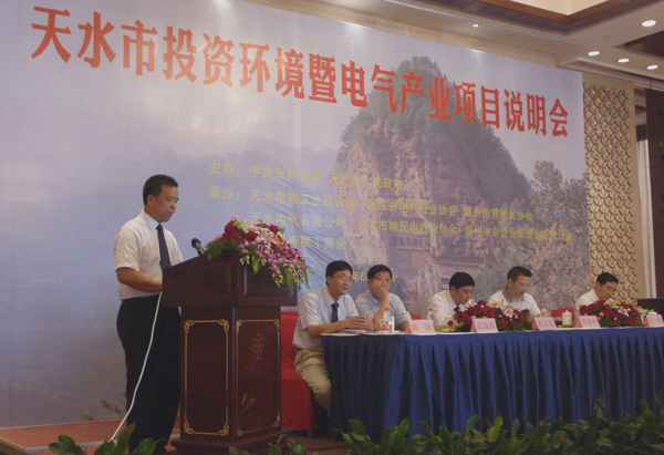 (长城电工总工程师张建成代表长城电工发言) 考察期间,考察团一行与宁波杭州湾新区管委会、温州乐清市政府、深圳市政府分别就发挥各自产业、资源、技术、人才等优势,加强交流合作、承接产业转移等进行了座谈交流。并在温州市举行了“天水—温州电气行业协会恳谈会”、“天水投资环境暨电气项目说明会”、“温州天水籍老乡代表联谊会”等系列活动,天水电器工业联合会与温州电气行业协会签订了战略合作协议,签约电工电器招商引资项目资金近20亿元。