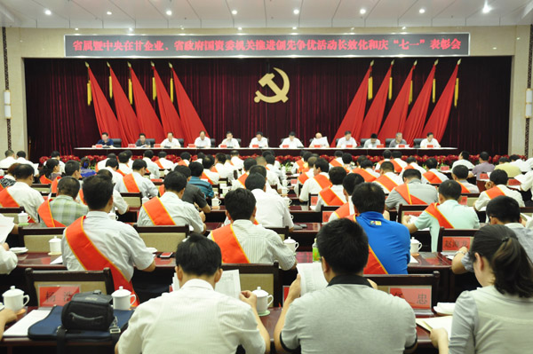 6月28日上午,省政府国资委党委召开省属暨中央在甘企业、省政府国资委机关推进创先争优活动长效化和庆“七一”表彰会,回顾总结两年多来的创先争优工作,交流经验,表彰先进,安排下阶段建立长效机制工作。