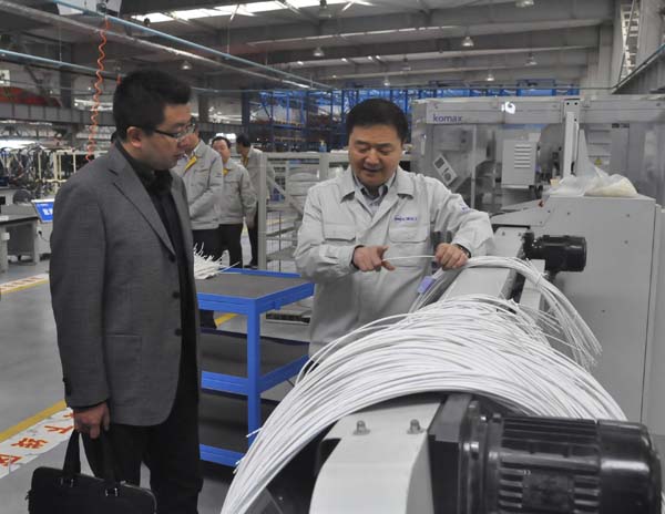 2015年10月14日,甘肃省劳动监察局副局长史永斌一行3人,来长城电工进行巡视检查。 史永斌副局长一行首先参观了长城电工天水电工电器产业园,长城电工总经理张希泰向检查组一行介绍了公司基本情况,产业园项目建设情况和以投产项目的生产运营情况。