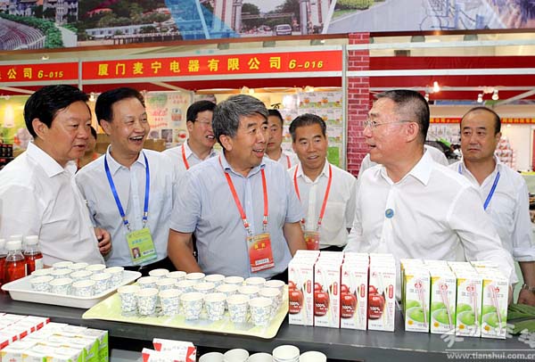 兰洽会期间,天水市委书记王锐,市委副书记、市长杨维俊等领导参观视察了长城电工展厅。公司董事长杨林,副总经理、果汁集团董事长毛建光就公司电动汽车充电桩等新能源产品研发和产业化及果汁产品市场情况做了专题介绍。
