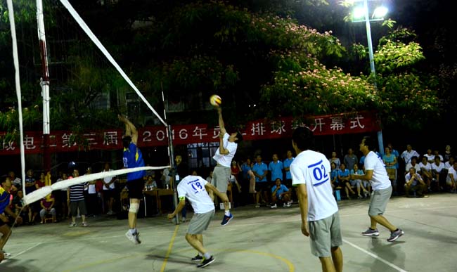 为丰富广大员工业余文化生活,大力推进全员健身运动,提高员工身心素质,增进各单位间的交流与友谊,推进和谐企业建设,展现长城电工系统广大员工的精神风采,7月15日晚,由长城电工主办、天传所公司承办的长城电工第三届暨2016年员工排球比赛在长开厂公司灯光球场举行开幕式。