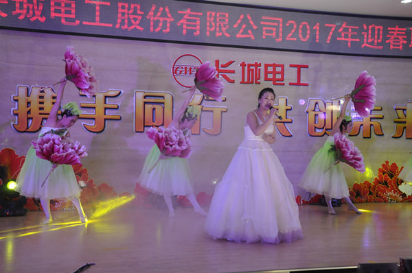 (长城电工董事长、总经理杨林致辞) 神猴辞旧岁,金鸡报新春。1月21日下午,随着欢快的开场舞蹈,长城电工2017年迎春联欢会在天电集团十楼会议室拉开了帷幕。 省属国有企业第二监事会主席成荣生、公司董事长、总经理杨林、党委书记杨春山、监事会主席郑久瑞及全体公司领导和参加公司2017年党建暨改革发展工作会议参会人员欢聚一堂,在轻歌曼舞中共迎新春。