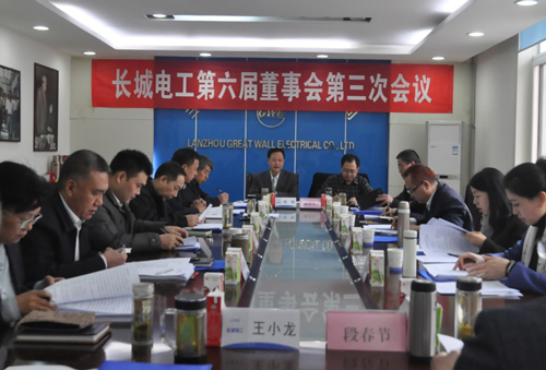 兰州长城电工股份有限公司第六届董事会第三次会议于2017年2月28上午9:00在公司四楼会议室召开,应到董事9人,实到9人,长城电工监事及高级管理人员列席会议。会议由长城电工董事长杨林主持召开。 |