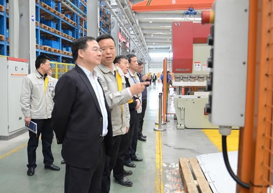 傅小锋一行参观了长城电工天水电工电器产业园展厅,随后深入长城电工长开厂公司B1中压空气绝缘开关设备制造数字化车间生产现场进行调研。张建成就公司园区建设、生产经营等方面的工作进行了汇报。