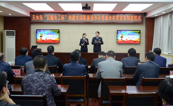 4月26日,由长城电工天水电器集团有限责任公司冠名、天水电器工业联合会参与协办的天水市“长城电工杯”创建全国质量强市示范城市有奖知识竞答抽奖仪式在市质监局会议室隆重举行。天水市政府副秘书长焦新德,市委宣传部副部长刘越高,市质监局局长王宏玮和发改、建设、环保等部门领导及天水市质量协会、市质监局班子成员与部分干部职工参加抽奖仪式。