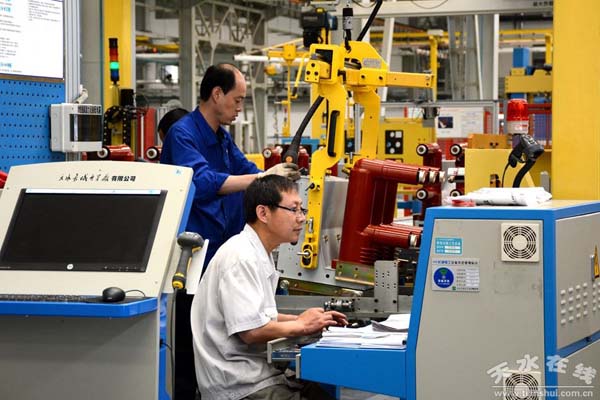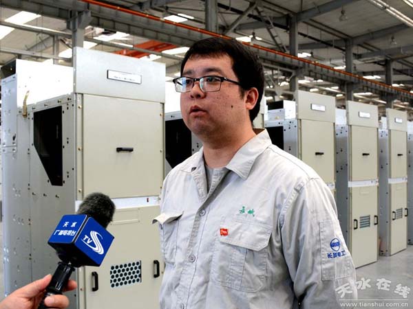 (长城电工天水长城开关厂有限公司元件制造部部长马刚) 来到被工信部授予国家智能制造示范项目的中压空气绝缘开关设备制造数字化车间,就又感知到了“中国智造”的强大力量。长城电工天水长城开关厂有限公司元件制造部部长马刚告诉记者:“中压空气绝缘开关设备制造数字化车间自2015年10月投入使用以来,有效提升了中压开关元件及开关设备的产能,提高了产品稳定性和质量一致性,其对促进区域电工电气产业集群化发展,打造国家西部电工电器城具有重要的现实意义。”据了解,该车间由空气绝缘开关元件装配检测分系统、空气绝缘开关设备装配检测分系统、开关设备箱壳制造分系统、开关元件主回路制造分系统等11个生产制造分系统组成,目前可实现12~24kV及40.5kV开关元件与成套设备由原材料、基础零件到成套产品的自动化、规模化生产。具备年产60000只灌封极柱、20000台中压开关元件、15000面中压开关成套设备的能力。