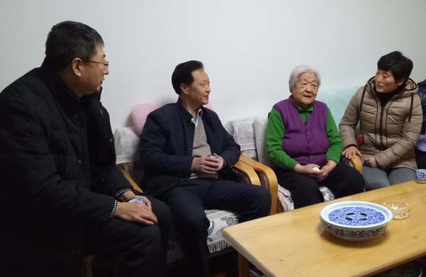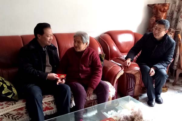 (杨林、郭满元看望慰问老党员、享受离休待遇的职工江桂芬)