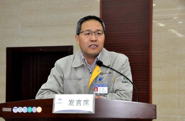 (二一三公司党委书记、董事长何建文做交流发言) 会议还签订了2018年经营目标责任书和安全生产目标责任书;对2017年度取得优异成绩的3个先进单位、2个安全生产先进单位、27个先进集体、36名先进个人进行了表彰奖励;先进单位天传所公司、物流公司和二一三公司向大会分别进行了大会交流发言。