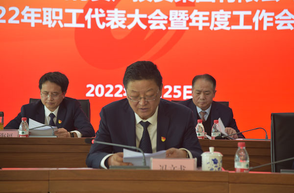 2月25日,甘肃省国有资产投资集团有限公司召开2022年职工代表大会暨年度工作会议。集团公司党委书记、董事长冯文戈,党委副书记、总经理成广平,在家领导班子成员、专职外部董事,工程咨询集团、甘肃电气集团、甘肃科技集团、甘肃药业集团有关领导,各子公司、委托管理企业主要负责同志,各部门负责人,职工代表及受表彰人员代表共计50余人参加会议,省政府国资委群众工作处处长、一级调研员巩继忠应邀参会,党委副书记、工会主席张心灵主持会议。