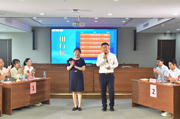 此次知识竞赛分“有问必答”必答题、“争分夺秒”抢答题、“惊心动魄”风险题三个环节,来自集团总部直属党支部和所属各子公司的6支参赛队伍同台竞技、各展风采。在必答环节,参赛选手们冷静思考、团结协作、沉着应答;在抢答环节,参赛选手们既比脑力、又拼手速,奋勇争先;在风险环节,参赛选手们敢冲敢拼、不惧挑战,展现出扎实的理论功底和良好的心理素质。沉浸在比赛氛围中的现场观众时而为得分选手加油鼓劲,时而为错失机会的选手扼腕叹息……中间穿插的互动答题环节在现场观众的积极抢答与热情配合下,将知识竞赛活动推向高潮。